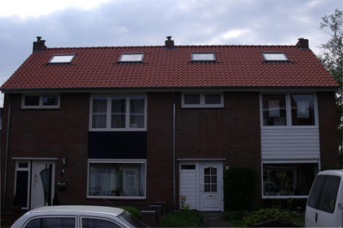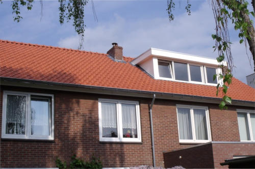 Pannendak met dakkapel en 4x Velux dakraam te Maastricht zuid limburg.Hier hebben we op 2 woningen (2 onder 1 kap) het oude pannendak gesloopt en weer helemaal opnieuw opgebouwd met een dakkapel en 4 stuks Velux dakramen te Maastricht.het gehele dak en dakkapel is geisoleerd en afgewerkt met trespa (zie hier boven).